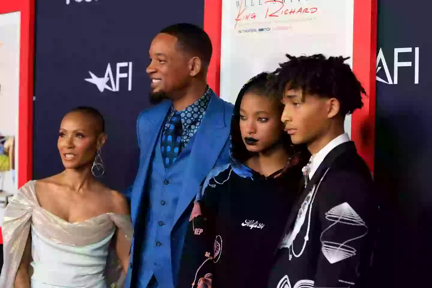 Jada Pinkett Smith, Will Smith, Willow Smith, and Jaden Smith at a premiere. (Alamy)