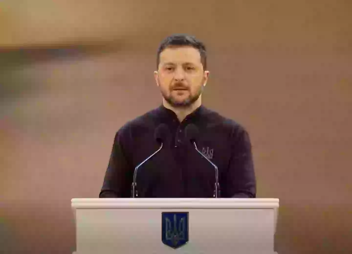 For context, Zelenskyy was wearing black trousers, boots and a black jumper which was embroidered with the Ukrainian trident - not shorts and flip flops.